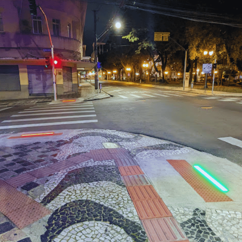 One interesting detail is that many crosswalks downtown, and also near Barigui Park, have a light strip embedded in the curb. This light glows red for “Do Not Walk” and changes to green for “Walk.”