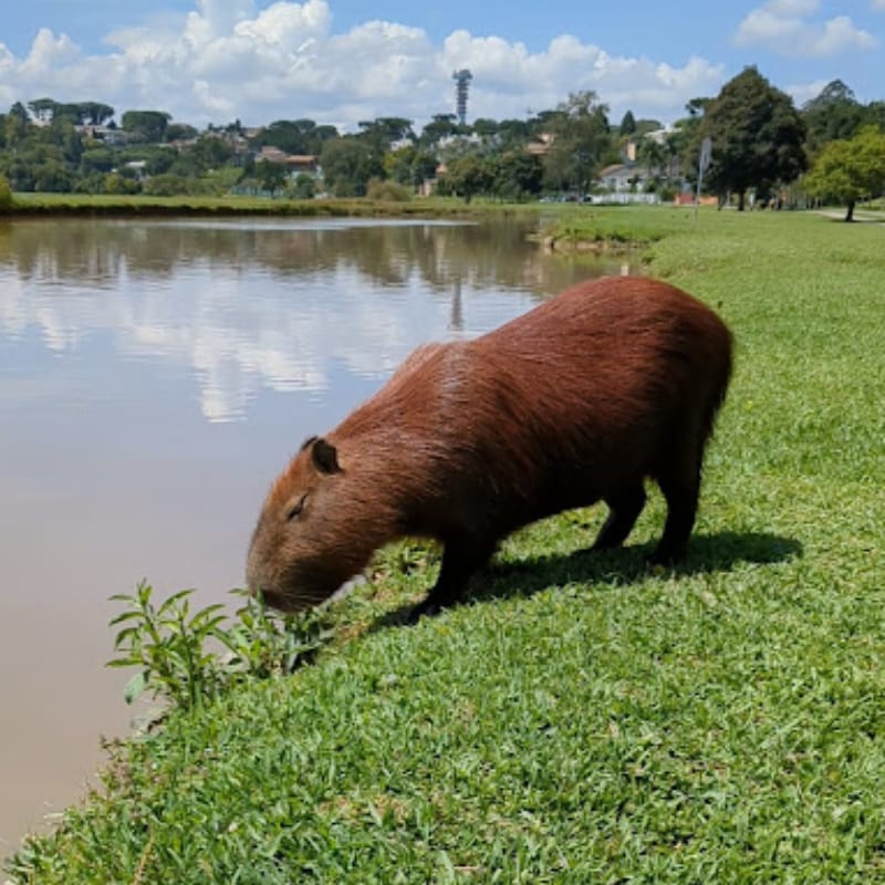 Both were photographed just a few hundred feet apart in Barigui Park on the exact same day. One has a sleek, brownish-red coat.
