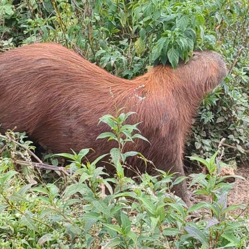 This happy Capy was having the time of its life rubbing against a bush by the river!