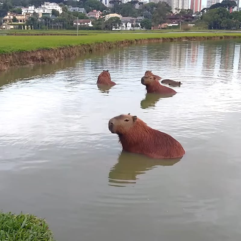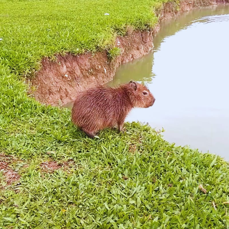This sweet baby capy wasn’t as lucky, stuck sitting on shore while the adults splashed around in Barigui Park’s giant lake.