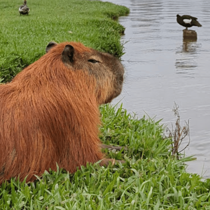 You might like this large Capybara who was relaxing in the park, either enjoying the beautiful view or thinking deeply about life and all the mysteries of the universe.