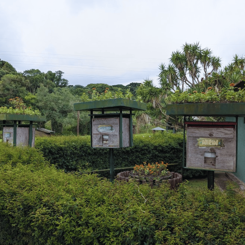 Curitiba, Brazil uses a variety of stingless bee called the Tetragonisca Angustula to help pollinate plants. Theses bees, and their hives, can be found in many parks and gardens. In fact, here’s a set of apiaries in Barigui Park, near where the Capybaras live!