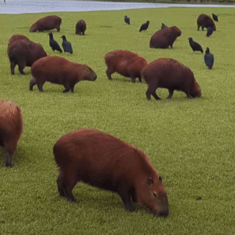 Hieronymus Bosch would have had a field day if he’d seen this huge gathering of Capybaras and vultures!