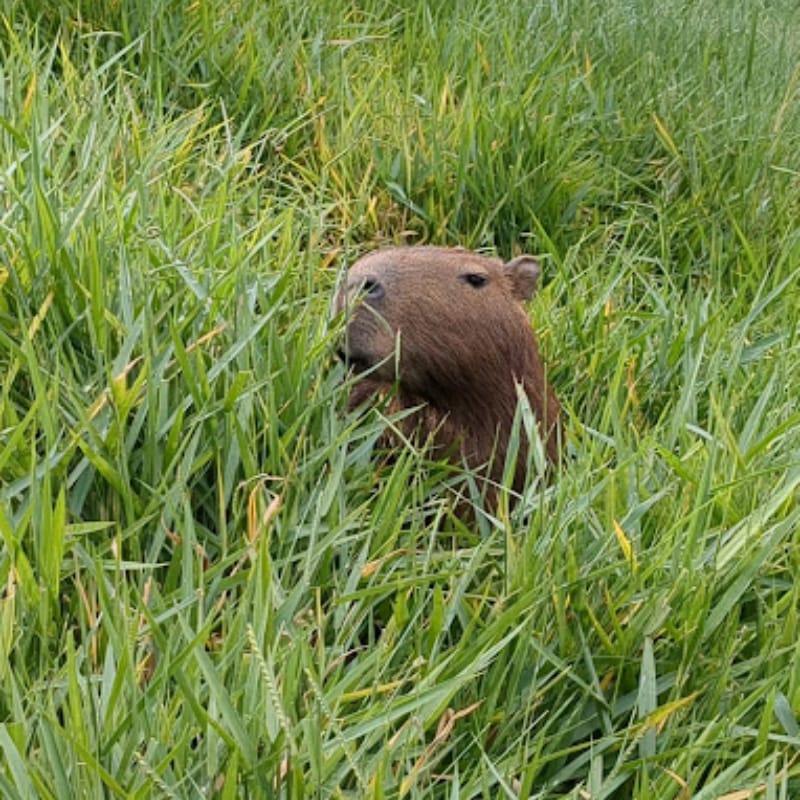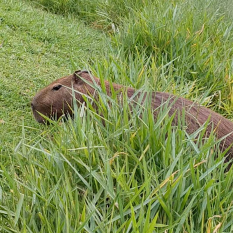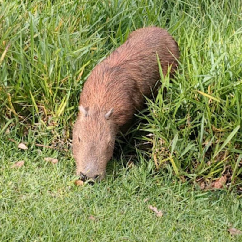 Anyway, that randomly came to mind while I was watching this capybara grazing in the tall grass before gracefully wandering back onto the lawn.