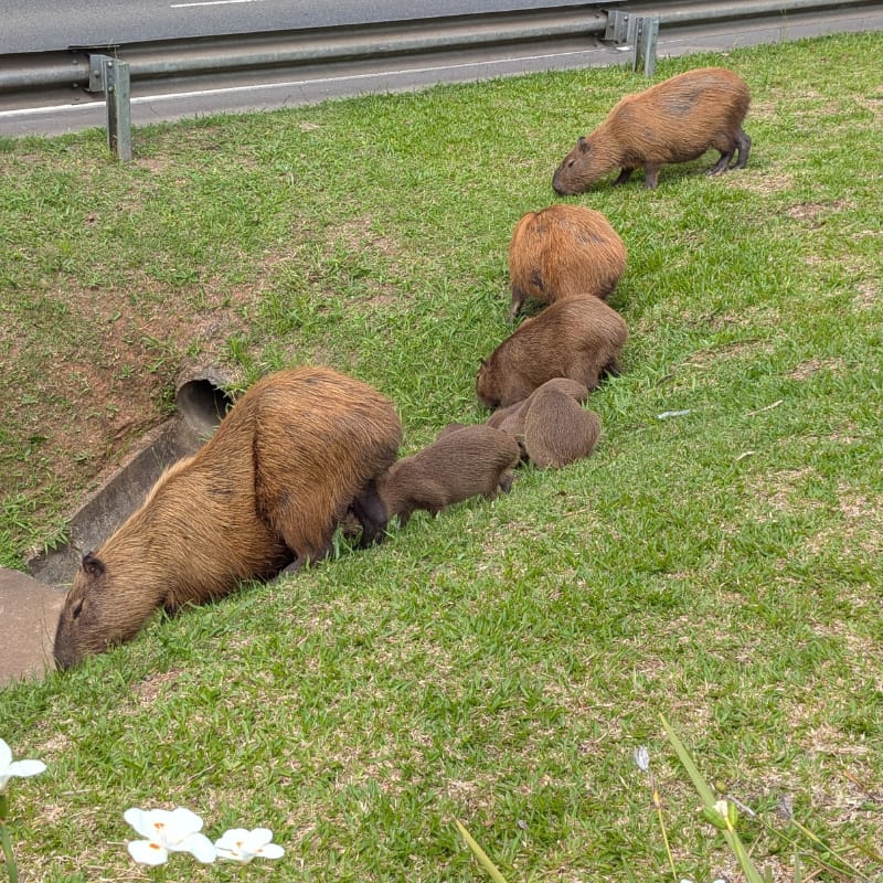 Here’s a family of Capybaras spotted just outside Barigui Park. Apparently tired of their regular diet, they decided to switch things up by grazing the highway divider instead!