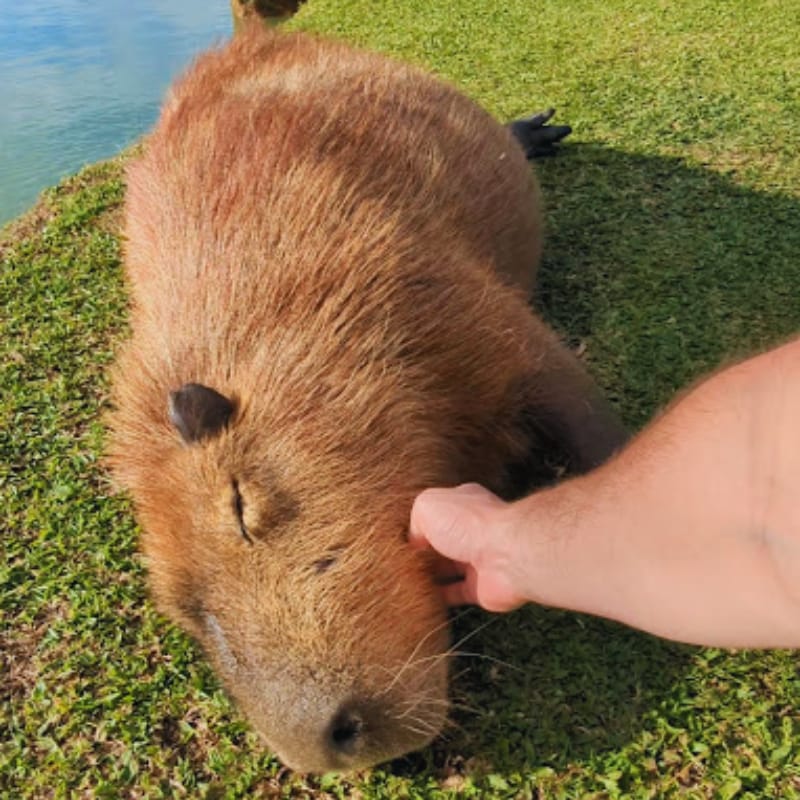 Here’s a Capybara who’s got it all figured out. Lounging by the water, enjoying the warm sunshine, getting a free chin scratch…