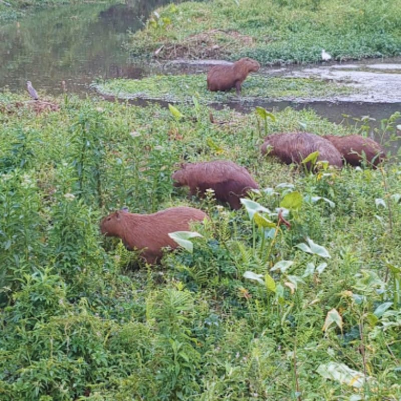 Case in point, these capys that are all getting ready to traverse the park and graze the lakeshore...