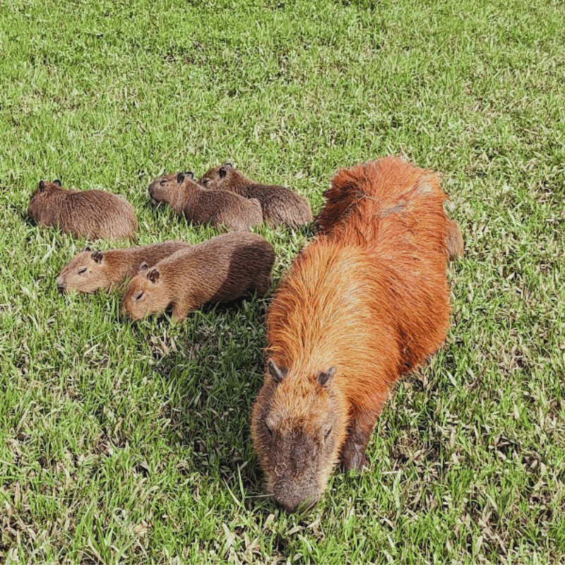 No Capybaras licking people or anything like that. But today’s email does contain a big capy family grazing the field. Hope you enjoy seeing them in the picture below!