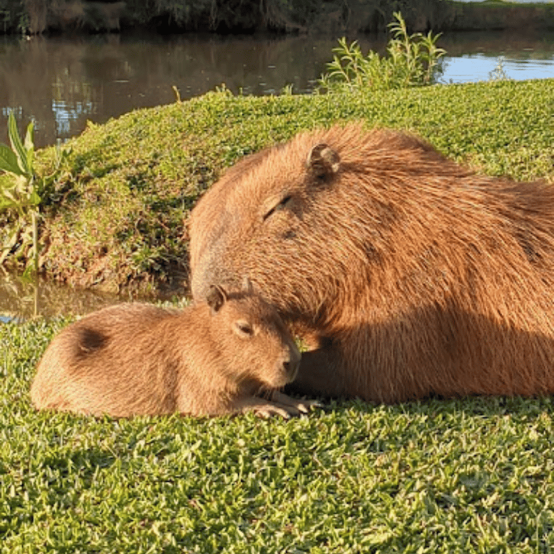 We started the week with a mother and baby grazing the park. And we’re ending the week with those same two Capybaras, snuggled up and going to sleep.