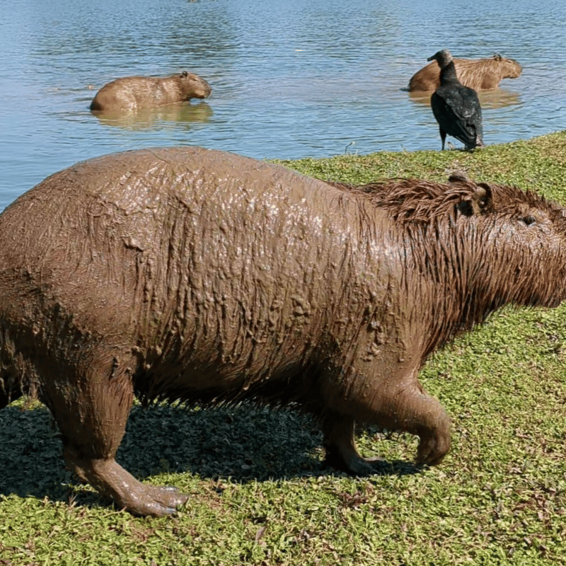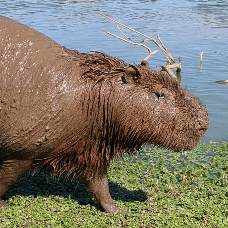 After goofing off in a big puddle, this Capybara was absolutely coated in mud!