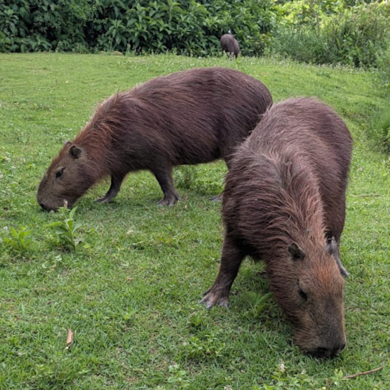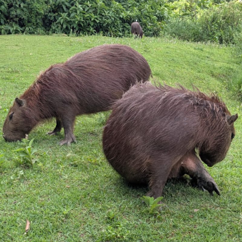 Here are three large capys grazing away, right near the path’s entrance.