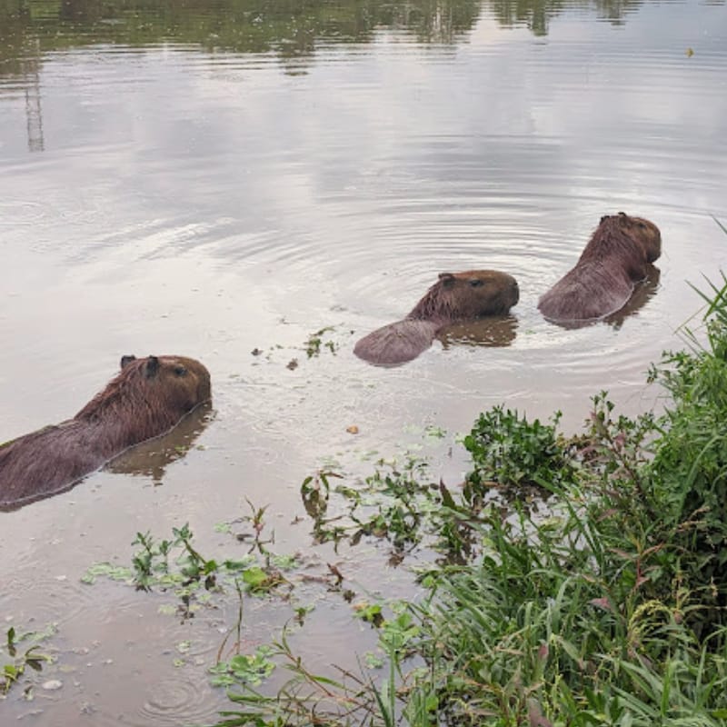 These three capys were grazing on land until the heat became too much.
