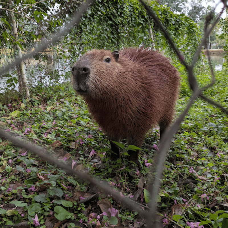 Mandy is the friendly capy who has appeared in many pictures and videos. The other capy, a rugged individualist, avoids people and spends time alone in a swampy area of the park.