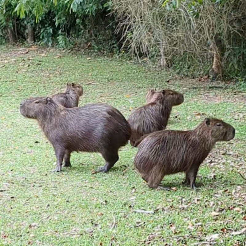 I didn’t spot any tiny capy babies this time, but the whole herd was out grazing together and enjoying the warm weather.
