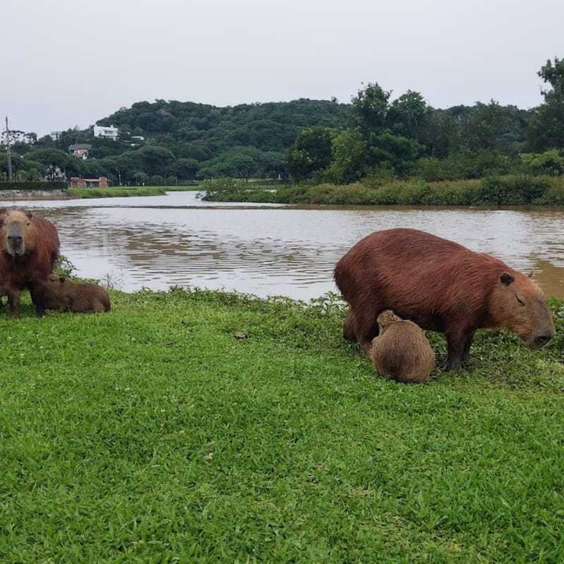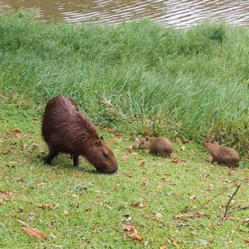 While working on this email, Google Photos also recommended this image from three years ago of a capybara family in Curitiba. It was hotter and drier that summer, and those babies were nursing instead of grazing.