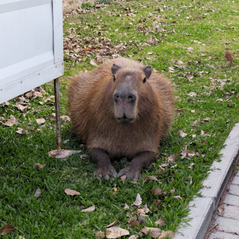 This big capy took a break from grazing to sit down and people watch.