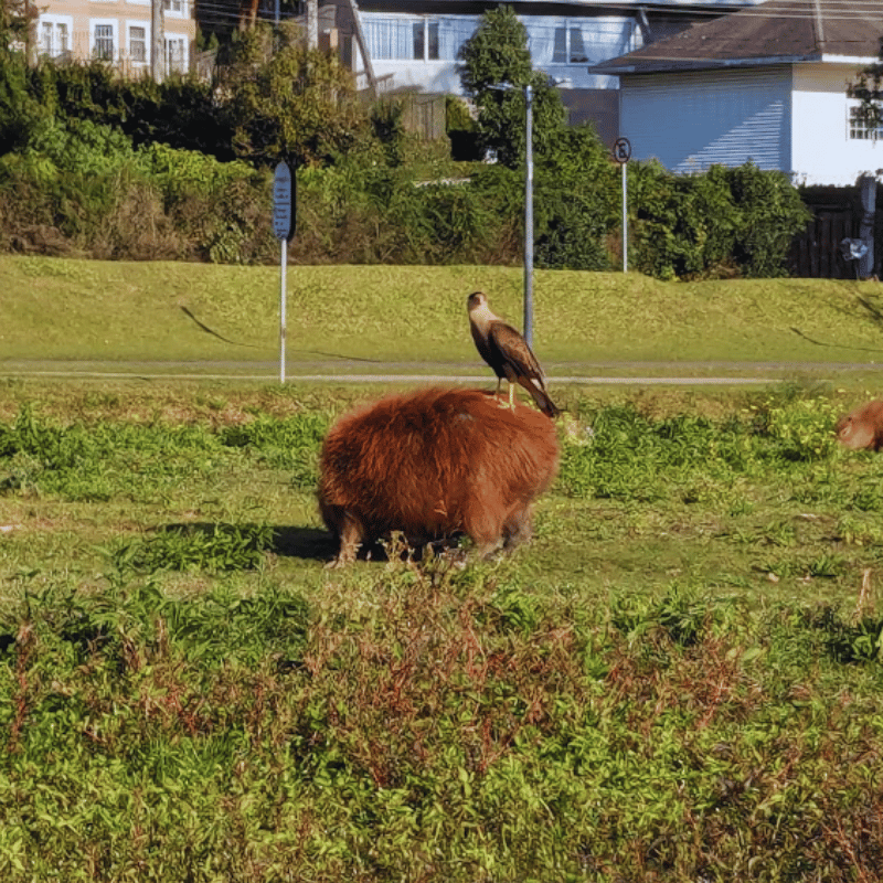Seeing falcons perched on Capybaras is a fairly common sight.