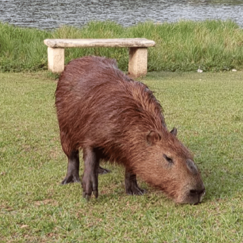 Capybaras eat between 6 and 8 pounds (2.7 to 3.6 kg) of grass per day, which is why many of the parks that capys live in are well-manicured.