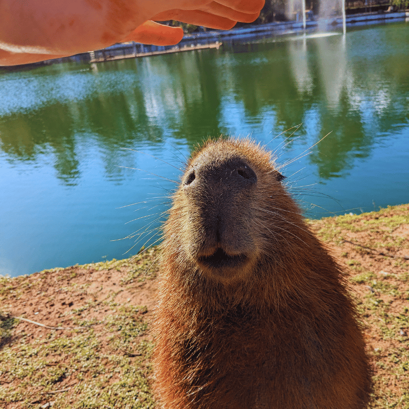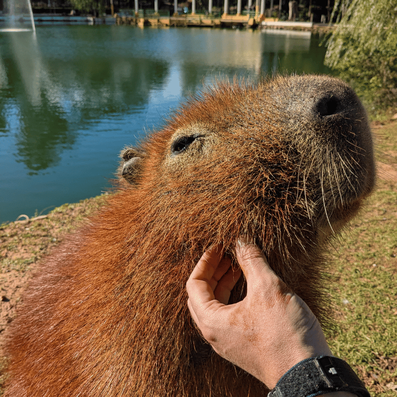 Mandy did not like or want tickles and really wasn’t particularly friendly a week ago. But once I started bringing the local Capybaras food…