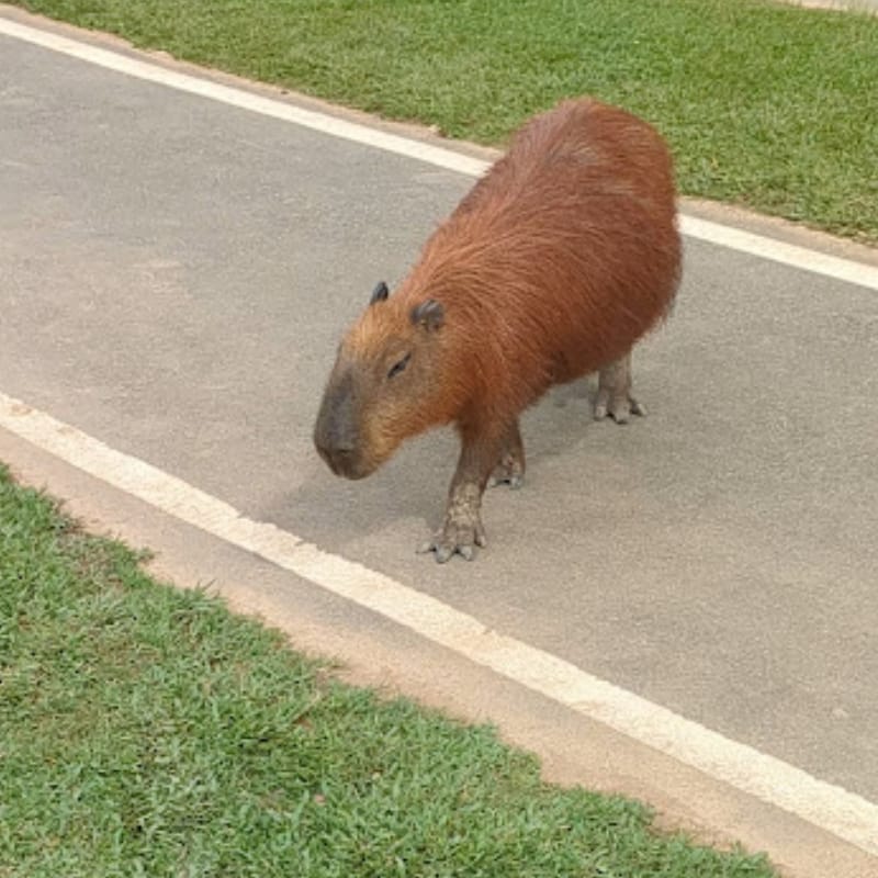 The Capybara happily cuts across all three lanes without a care in the world. It always has the right of way.