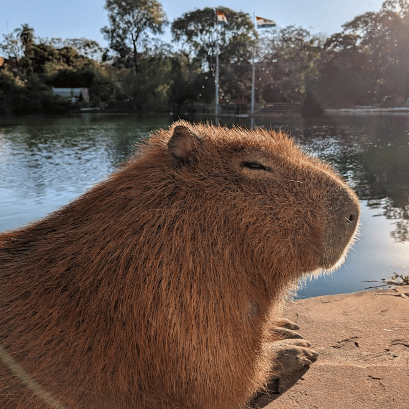 Here’s Mandy, the friendliest Capybara in Villarrica, Paraguay, hanging out in the park and enjoying the sun on an otherwise chilly day.